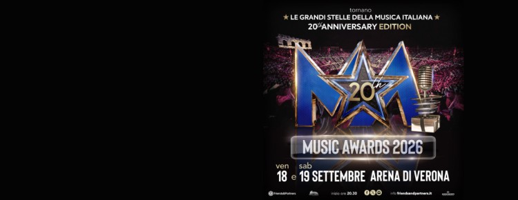 I Music Awards si preparano a vivere due serate indimenticabili e speciali venerdì 18 e sabato 19 settembre 2026, nello spettacolare scenario dell'Arena di Verona, per festeggiare il loro 20° Anniversario!